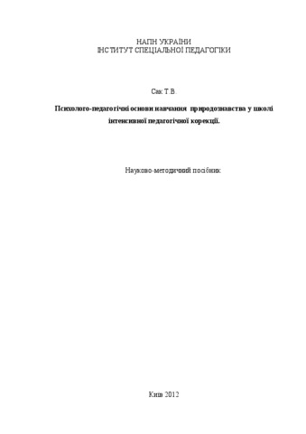 | Divisions: | Mykola Yarmachenko Institute of special education and psychology of National academy of educational sciences of Ukraine > Лабораторія інтенсивної педагогічної корекції |