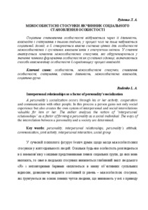 A personality’s socialization occurs through his or her activity, cooperation and communication with other people. In this process a person gains not only social experience but also creates the own system of interpersonal and social interrelations valuable for him or her. The author analyses the notion of “interpersonal relationships” as a factor of forming a personality as a social individual. The ways of the interrelation between a personality and a society are determined