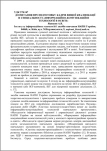 У тезах розповідається про питання про підготовку кадрів вищої кваліфікації зі спеціальності «Інформаційно-комунікаційні технології в освіті».