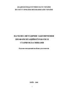 Мельник, О.В. and Уличний, І.Л. (2008) Науково-методичне забезпечення профорієнтаційної роботи зі старшокласниками: науково-методичний посібник для вчителів . "Мегапринт", м. Київ, Україна.