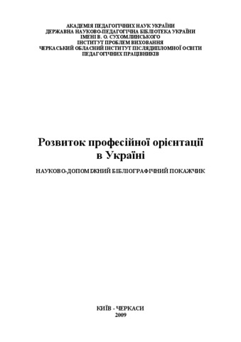 Дане бібліографічне видання є цінним джерелом для вивчення та розбудови системи профорієнтації в Україні. Науково-допоміжний бібліографічний покажчик складається з 11 розділів, що вміщують 1253 назви джерел з питань професійної орієнтації в Україні і зарубіжних країнах. Видання має на меті сприяти подальшому удосконаленню системи професійної орієнтації в Україні, зокрема: науковим дослідженням в цій галузі, узагальненню досвіду та запровадженню нових форм і методів профорієнтаційної роботи, перспективних підходів до профдіагностики та профвідбору особистості різних категорій населення у роботі як закладів освіти різних рівнів, позашкільних закладів, так і служб зайнятості. Покажчик призначений для наукових працівників, викладачів, студентів, аспірантів, керівників навчальних закладів, психологів, фахівців суміжних наук, бібліотечних працівників, а також для всіх, хто зайнятий у сфері профорієнтаційної роботи.