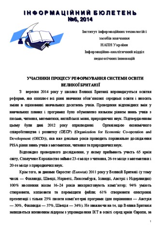 - Малицька, І.Д. (2015) Учасники процесу реформування системи освіти Великої Британії Інститут інформаційних технологій і засобів навчання НАПН України, м.Київ, Україна. (Submitted)