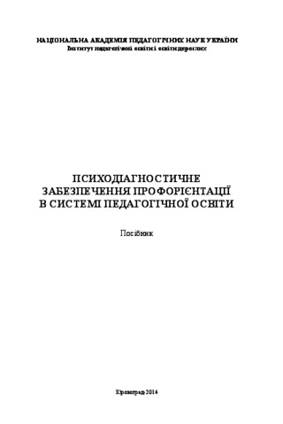 ІПООД, НАПН України (2014) Психодіагностичне забезпечення профорієнтації в системі педагогічної освіти . Імекс- ЛТД, м. Кіровоград, Україна. ISBN 978-966-189-330-5