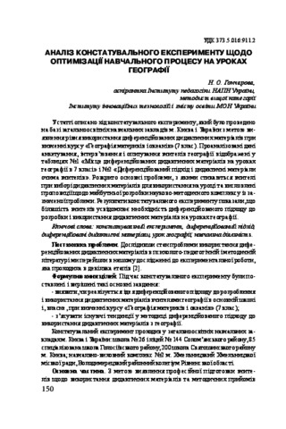 - Гончарова, Наталія Олександрівна (2014) Analysis ascertaining experiment on optimization of the educational process at a geography lesson Проблеми сучасного підручника (14). pp. 150-156. ISSN ISBN 978-966-644-382-6