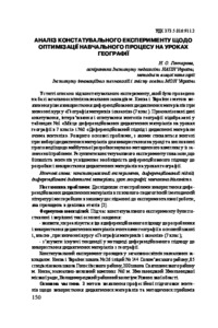 This article describes the course of ascertaining experiment, which was conducted on the basis of secondary educational institutions in Kiev and Ukraine with the purpose of determining the level of use of differentiated didactic materials in the study course «The geography of continents and oceans» ( Grade 7 ). Survey data, interviewing and interrogation of geography teacher were analyzed and displayed in the tables number 1 «Place of differentiated didactic materials for a geography lesson in the 7th grade» and number 2 «Differentiated approach and didactic materials through the eyes of teachers». The main problems faced by teachers in choosing instructional materials for use in the classroom were disclosed and proposals for the establishment of scientifi c and methodical complex of described problem in the future were outlined. The results of ascertaining experiment showed that the majority of the teachers aware of the need for a differentiated approach to the development and use of teaching materials at geography lessons.