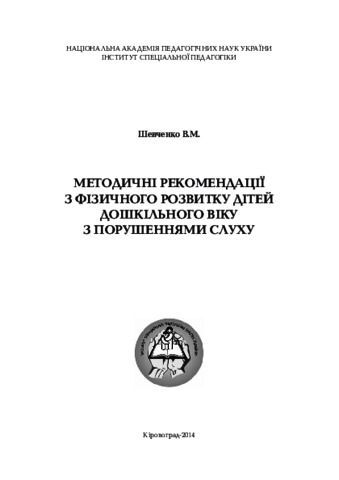 Шевченко, В.М. (orcid.org/0000-0003-0119-3206) (2014) Guidelines for physical development of preschool children with hearing impairment . Імекс-ЛТД, м.Кіровоград, Україна. ISBN 978-966-189-322-0