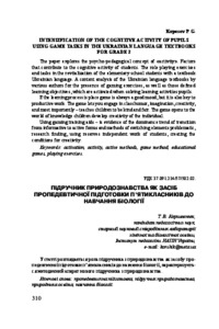 - Коршевнюк, Т. В. (2014) Textbook natural study as a means of propaedeutic prepare fifth graders for learning biology Проблеми сучасного підручника (14). pp. 310-320. ISSN ISBN 978-966-644-382-6