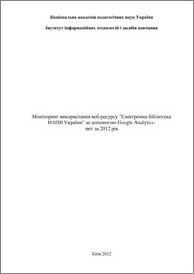 - Шиненко, М.А., Лабжинський, Ю.А. and Ткаченко, В.А. (2013) Моніторинг використання веб-ресурсу "Електронна бібліотека НАПН України" за допомогою Google Analytics: звіт за 2012 рік [Experiment] (Unpublished)
