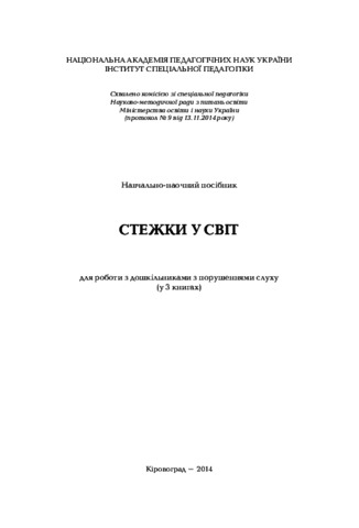 | Divisions: | Mykola Yarmachenko Institute of special education and psychology of National academy of educational sciences of Ukraine > Лабораторія сурдопедагогіки |
