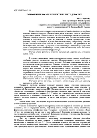 | Keywords: | Ключові слова: розвиток, інтелект, метакогніції, дорослий вік, ментальна модель світу. |