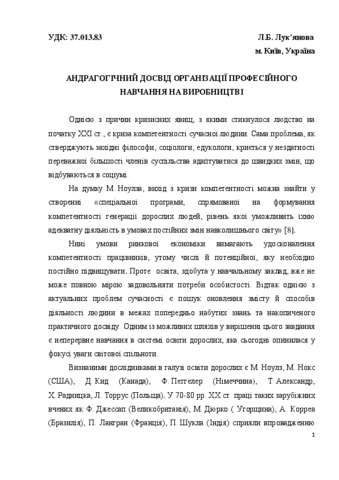| Keywords: | Сontinuous professional education, adult education, intercompany, andragogical experience, training. |