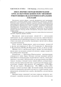 This article deals with new forms and methods of forming cross-cultural values in the educational work of higher pedagogical educational institutions. Special attention is paid to forms of educational work (individual, micro-group, group and mass). The author points out the peculiarities of organization of curator’s hours, special course, and meetings in the library, individual consultation and training activities with students directed at education of cross-cultural values, and considers methods of ethical dialogue, conversation, discussion, debates, exercises, creative tasks etc. The content, forms and methods of work used in the educational activities of higher educational institutions were aimed at the formation of а cross-cultural environment in higher pedagogical educational institutions, intercultural tolerance, dialogue of cultures, overcoming negative stereotypes,intercultural conflicts, the development of modern communications, skills of cross-cultural interaction.