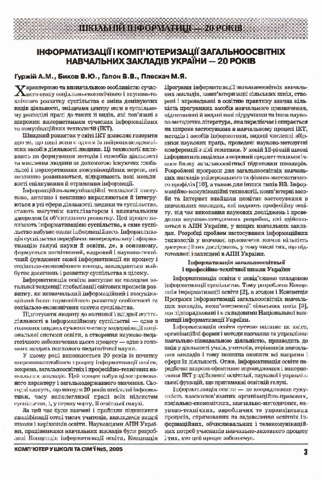 - Биков, В.Ю., Гуржій, А.М., Гапон, В.В. and Плескач, М.Я. (2005) 20 years of Informatization and computerization of Ukraine secondary schools Комп'ютер у школі та сім'ї, 5 (45). pp. 3-11.