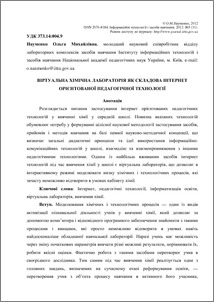 - Науменко, О.М. (2012) Virtual chemical laboratory as constituent is the internet of the oriented pedagogical technology Інформаційні технології і засоби навчання, 5 (31). ISSN 2076-8184