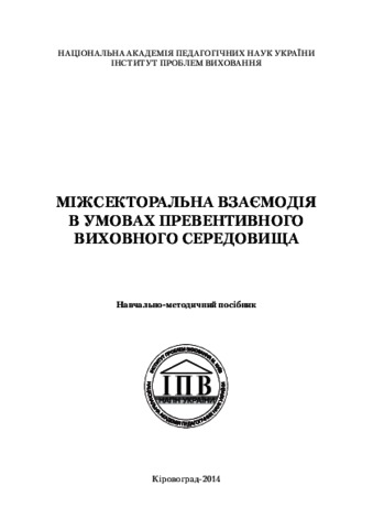 Кириченко, В. І. and Єжова, О. О. (2014) Міжсекторальна взаємодія в умовах превентивного виховного середовища . Імекс ЛТД, м. Кіровоград, Україна. ISBN 978-966-189-314-5