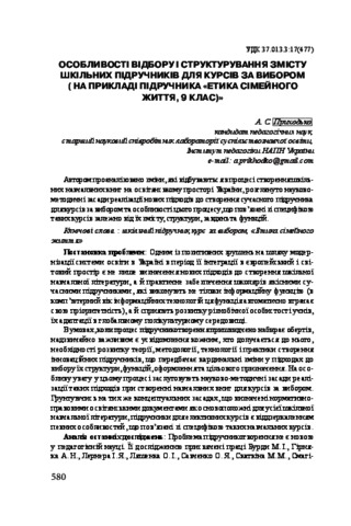 - Приходько, Алла Степанівна (2014) Features of selection and strukturirovaniya of maintenance of school textbooks for courses on a choice (there is «Ethics of domestic life on the example of student. 9 class») Проблеми сучасного підручника (14). pp. 580-587. ISSN ISBN 978-966-644-382-6