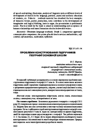 - Яценко, Володимир Сергійович (orcid.org/0000-0002-7948-2983) (2014) Problems of construction of basic school geography textbooks Проблеми сучасного підручника (14). pp. 860-865. ISSN ISBN 978-966-644-382-6