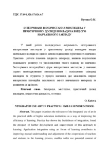 - Кутова, О.М. (2014) The integrated use of art in practical skills higher education institution The problems of modern teacher: Collected Works Uman State Pedagogical University Paul Tychyna, 3 (10). pp. 54-59. ISSN 2307-4914