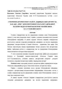 - Коваленко, С. Г. (orcid.org/0000-0002-5836-6422) (2012) Creation of Authoritative File “Individual Authors” on the Basis of ILS “LAIS” for V.O. Sukhomlynskyi State Scientific and Pedagogical Library of Ukraine E-catalogue Інформаційні технології і засоби навчання, 1 (27).
