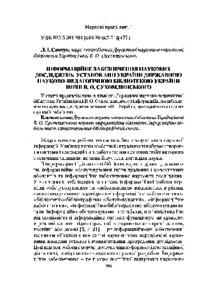 - Information Support Provided by V.O. Sykhomlynskyi State Scientific and Pedagogical Library of Ukraine for Scientific Researches Done at APS of Ukraine Establishments (deposited 28 Jan 2015 11:49) [Currently Displayed]
