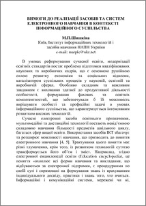 - Шишкіна, М.П. (2012) Requirements for Implementation of e-Learning Systems and Tools in the Context of Information Society Теорія та методика навчання фундаментальних дисциплін у вищій школі, 3. pp. 333-339.