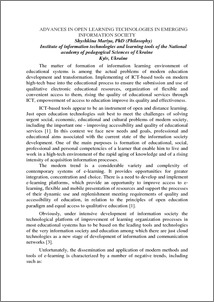 - Шишкіна, М.П. (2012) Advances in Open Learning Technologies in Emerging Information Society Acta Universitatis Pontica Euxinus. Special number., 2. pp. 487-489.