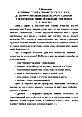 - Брюховецька, О. В. (2013) Development of readiness future psychologists for alternative forms of teaching during training personally oriented system service teacher training Вісник післядипломної освіти, 9 (22). pp. 51-57.