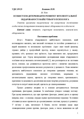 - Волянюк, Н. Ю. (2013) Personal determinants of intellectual giftedness future psychologists Вісник післядипломної освіти, 9 (22). pp. 74-80.