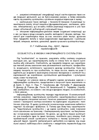 - Найдьонов, Олександр Григорович (2013) Особистість в умовах інформаційного суспільства In: Міжнародна наукова конференція „Дні науки філософського факультету – 2013”, 16-17 квіт. 2013р. . Київський національний університет імені Тараса Шевченка, м.Київ, Україна, pp. 158-160.