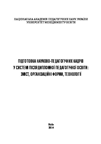 - Підготовка науково-педагогічних кадрів у системі післядипломної педагогічної освіти: зміст, організаційні форми, технології (deposited 30 Jan 2015 12:35) [Currently Displayed]