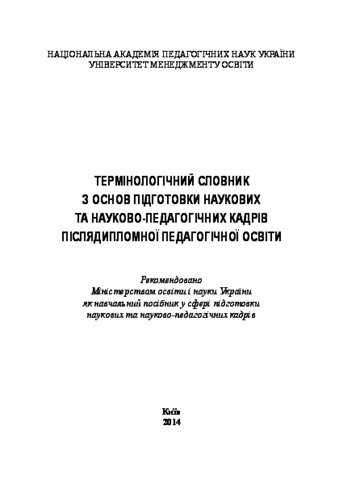 Термінологічний словник з основ підготовки наукових та науково-педагогічних кадрів післядипломної педагогічної освіти (deposited 30 Jan 2015 12:31)