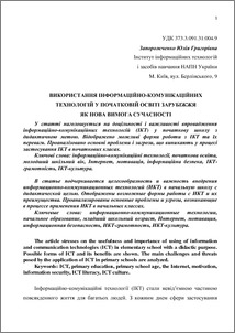 - Запорожченко, Ю.Г. (2011) The use of ICT in primary education in abroad countries as a new modern requirement Порівняльно-педагогічні студії-2011 : Матеріали науково-практичного семінару.