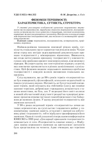 - Докукіна, О.М. (orcid.org/0000-0002-5773-2224) (2014) The Phenomenon of Tolerance: Characteristics, Essence, Structure Теоретико-методичні проблеми виховання дітей та учнівської молоді, 2 (18). pp. 206-215. ISSN 978-966-189-298-8