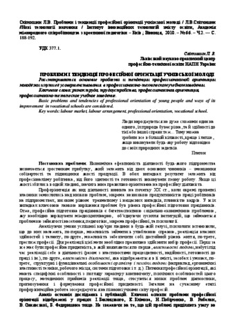 - Сліпчишин, Л.В. (2010) Issues and trends of the vocational school youth professional orientation Нові технології навчання, 2 (66). pp. 188-192.