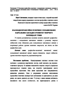- Сліпчишин, Л.В. (2010) Interaction between vocational and extracurricular educational institutions with the students’ creative potential development Молодь і ринок, 10 (69). pp. 33-37.