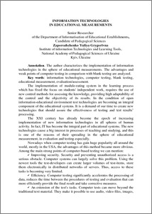 The author characterizes the implementation of information technologies in the sphere of educational measurements. The advantages and weak points of computer testing in comparison with blank testing are analyzed.