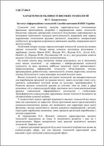 - Запорожченко, Ю.Г. (2012) Characteristic features of high technologies In: Сучасні інформаційні технології в дистанційній освіті СІТвДО-2012: I-й Всеукраїнський науково-практичний семінар : збірник тез доповідей (-). Івано-франківський національний технічний університет нафти і газу, м. Івано-Франківськ, Україна.