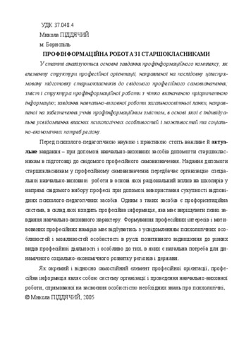 - Піддячий, Микола Іванович (orcid.org/0000-0001-6571-1450) (2005) Professional information work with high school students Наукові записки Тернопільського національного педагогічного університету імені Володимира Гнатюка (3). pp. 80-85.