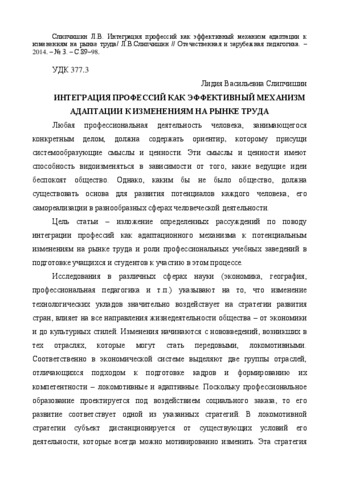 - Сліпчишин, Л.В. (2014) Integration of professions as an effective mechanism to adapt to changes in the labor market Отечественная и зарубежная педагогика, 3. pp. 89-98.