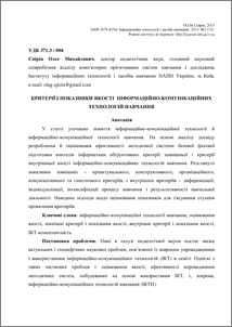 | Keywords: | information and communication technologies of learning, quality assessment, external criteria and indicators of quality, internal criteria and indicators of quality, ICT-competence |