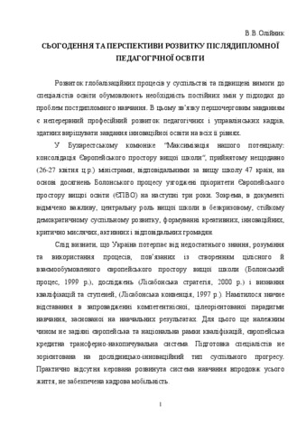 - Олійник, В.В. (2012) Present and future development of postgraduate pedagogical education Пост Методика, 4 (107). pp. 2-6.