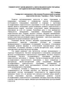 - Олійник, В.В. (2011) University of Education Management of NAPS of Ukraine Today and Prospects of Development Интеграция систем повышения квалификации работников образования стран-участников СНГ: материалы Междунар. науч. конф., 27 – 28 октяб. 2011 г. pp. 10-14.
