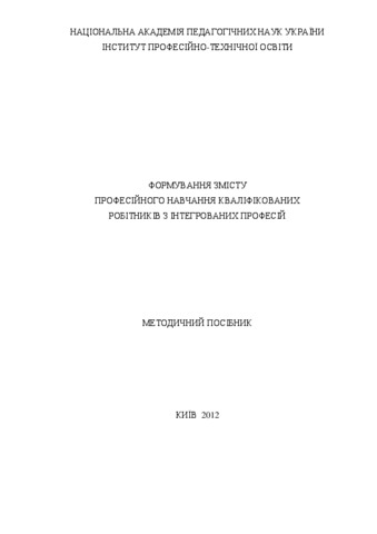 Лузан, П.Г., Кравець, Ю.І. and Пятничук, Т.В. (2012) Formation of the content of vocational training skilled workers with integrated occupations (handbook) . Інститут професійно-технічної освіти НАПН України, м. Київ, Україна.