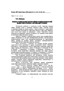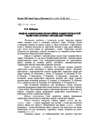 - Любарець, Владислава Вікторівна (2012) Model and principles of formed professional competence of travel agents Весник Луганского национального университета имени Тараса Шевченка (15). pp. 58-65. ISSN 2227-2844