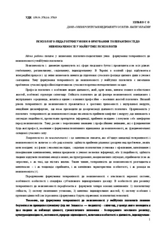 Purpose is to determine the psychological and pedagogical conditions tolerance to uncertainty of future psychologists.