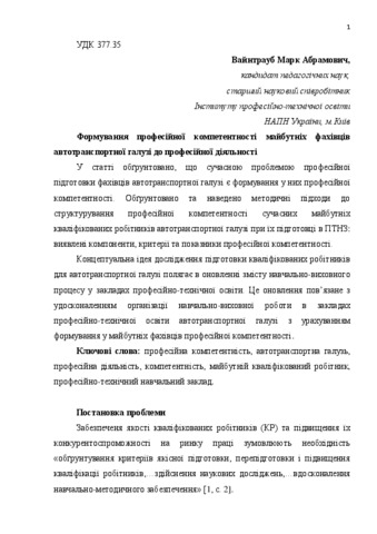 - Вайнтрауб, М.А. (2014) Forming of professional competence of future specialists of motor transport industry is to professional activity Нові технології навчання (80). pp. 131-136.