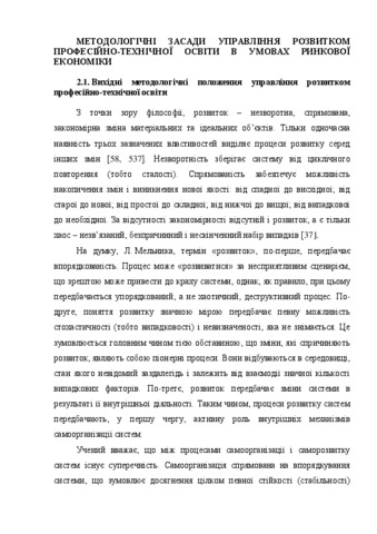 Обґрунтовано методологічні засади управління розвитком професійно-технічної освіти в умовах ринкової економіки на основі системного, комплексного, діяльнісного, інформаційного, дослідницького, стратегічного, адаптивного, культурологічного, кваліметричного, маркетингового підходів, репрезентовано розгляд наукового феномену «диверсифікація управління професійно-технічною освітою» як стратегічного напряму, атрибуту ефективного управління розвитком професійно-технічної освіти