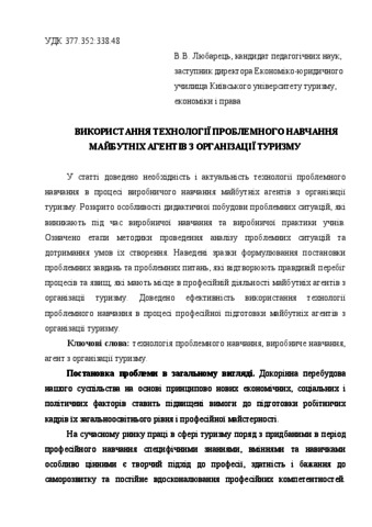 Любарець В.В. Використання технології проблемного навчання майбутніх агентів з організації туризму Microsoft Word (3).pdf Download (123kB) | Preview |