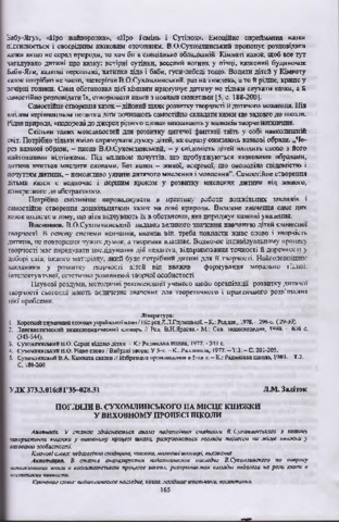 - Заліток, Людмила Михайлівна (2010) Погляди В. Сухомлинського на місце книжки у виховному процесі школи Вісник Черкаського університету (1). pp. 165-170.
