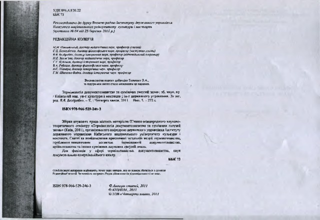 - Зозуля, Світлана Миколаївна (orcid.org/0000-0003-3350-4638) (2011) English-language dictionaries of the archived terminology: problems of introduction in Archivе Термінологія документознавства та суміжних галузей знань: збірник наукових праць. Випуск 5. pp. 106-112. ISSN ISBN 978-966-529-246-3